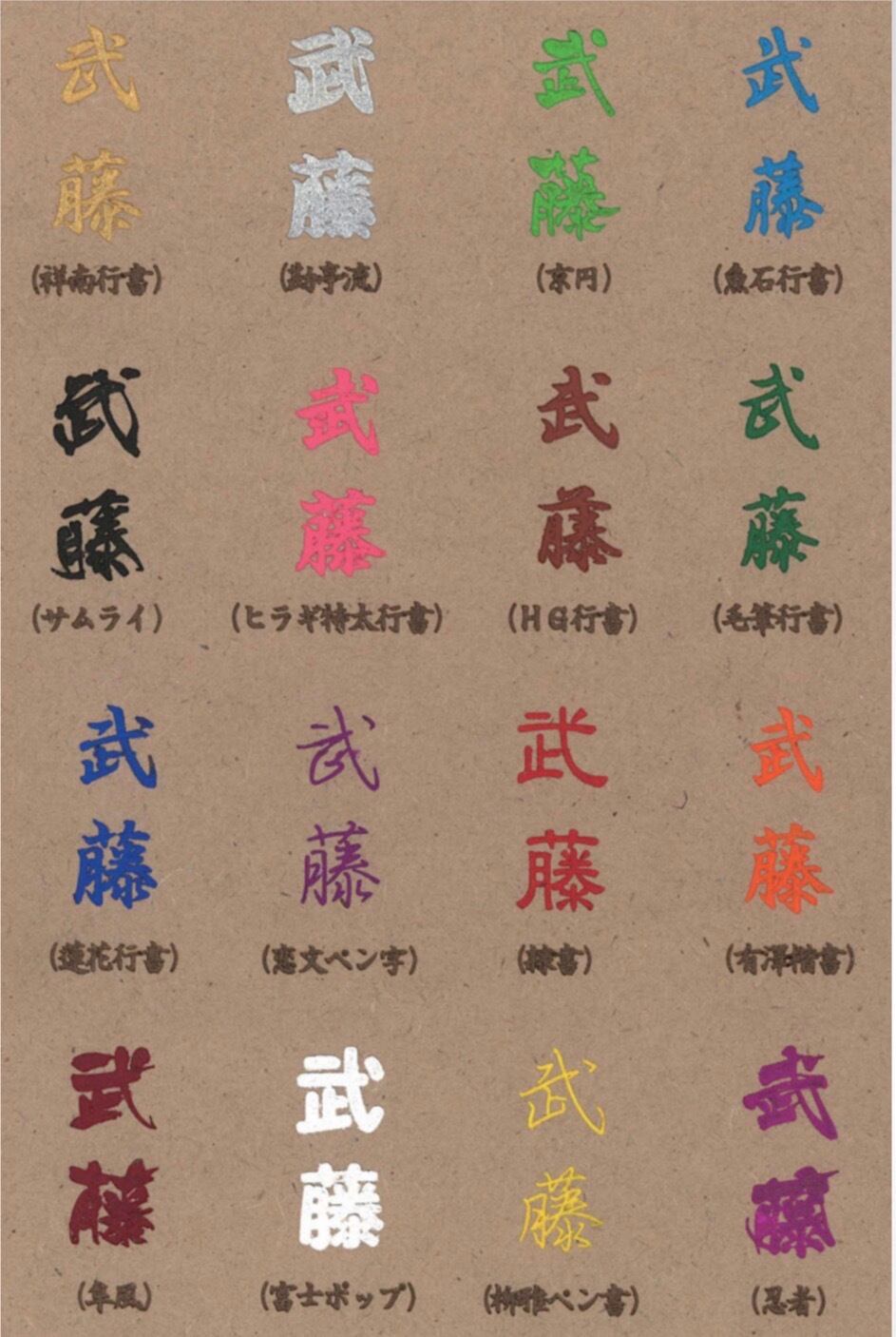 例)名入れ 山田、書体 京円、文字色 金色