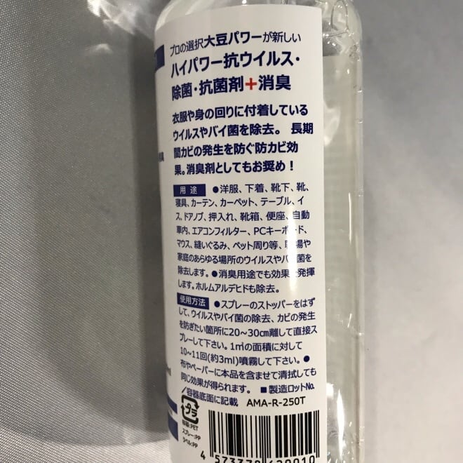 人体に害のない大豆抽出アミノ酸が主成分の抗ウイルス・抗菌剤です。