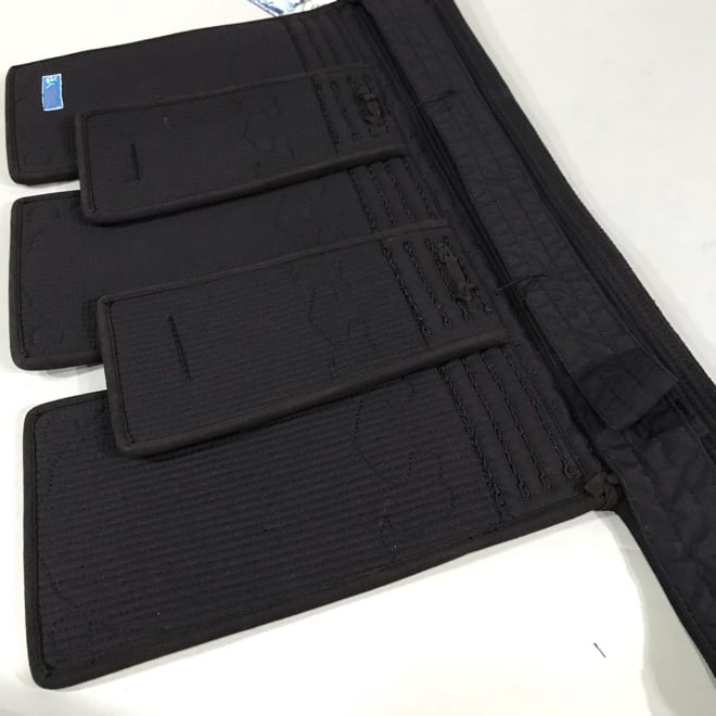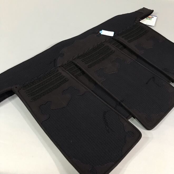 この防具の特徴は、木綿を一切使用せずに、表面材料にHiCoolポリエステルを使用して、天日干しを可能にした事です。洗濯機で丸洗いも可能です(胴は洗えません)