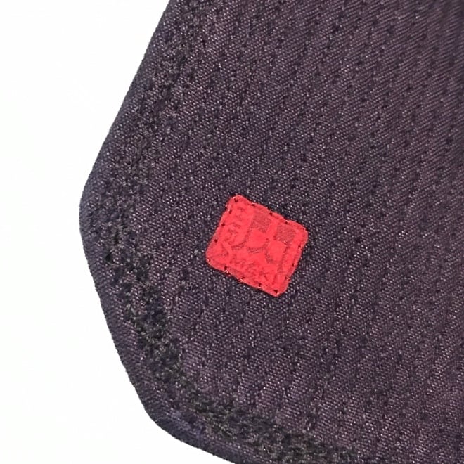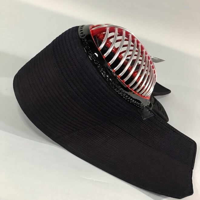 布団は厚めの芯材を8ミリ刺しで縫い上げ、耐衝撃性を強くして、同時に手刺しの風合いを出しております。また、面の閂(顎の横の止め革)を、アゴと面布団が開きにくいように1.5センチ下げています。