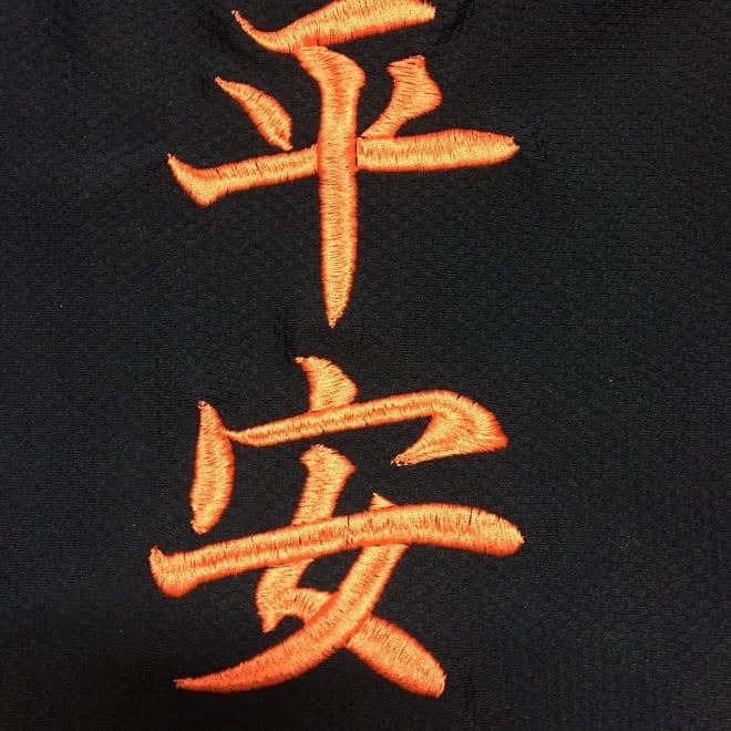 通常、袖刺繍1800円、腰板刺繍2000円ですが、剣道着・袴セットとの同時購入の場合、3300円にて提供いたします。